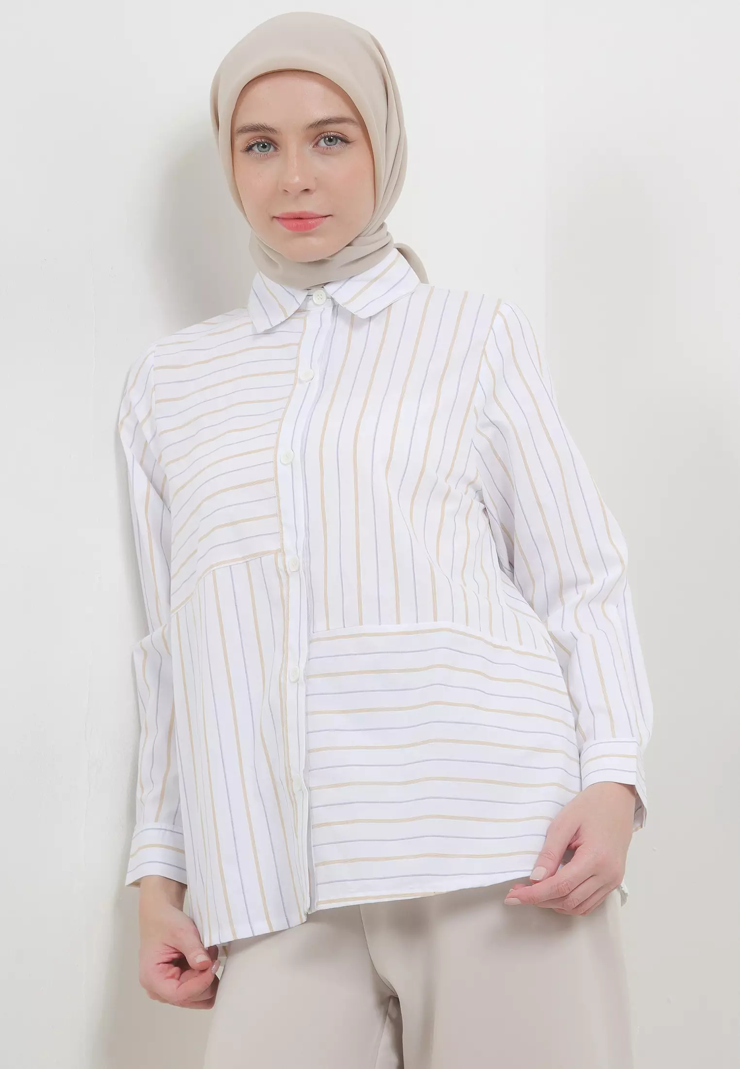 MFMW Vior Atasan Kemeja Broken White Motif Salur