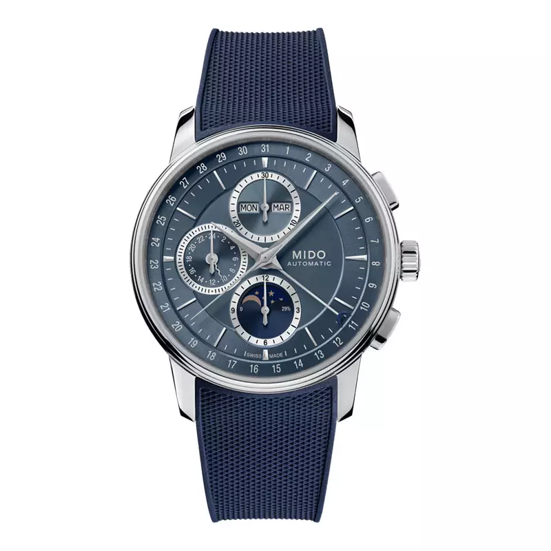 Jam Tangan Pria MIDO Baroncelli M027.625.17.041.00 Chronograph Moonphase Blue Dial Blue Rubber Strap