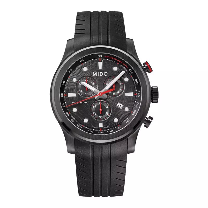 Jam Tangan Pria MIDO Multifort M053.417.37.051.00 Chronograph Black Dial Black Rubber Strap