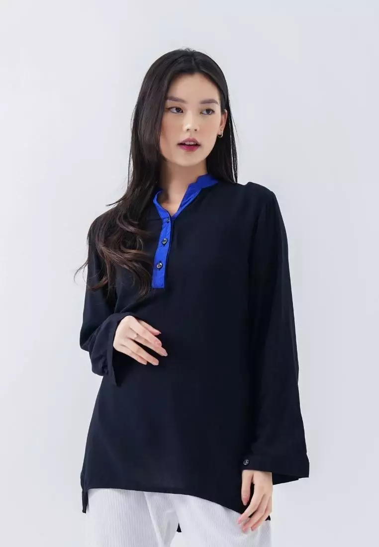 - Leher: Kerah Mandarin