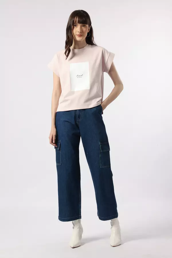 MINIMAL - Carlotta - Double Jersey Typography Top - Pink Colour Pink