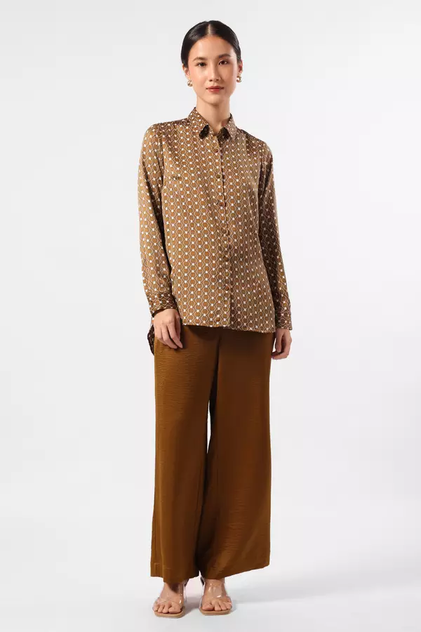 MINIMAL - Celeste - Printed Satin Shirt - Olive Colour Olive