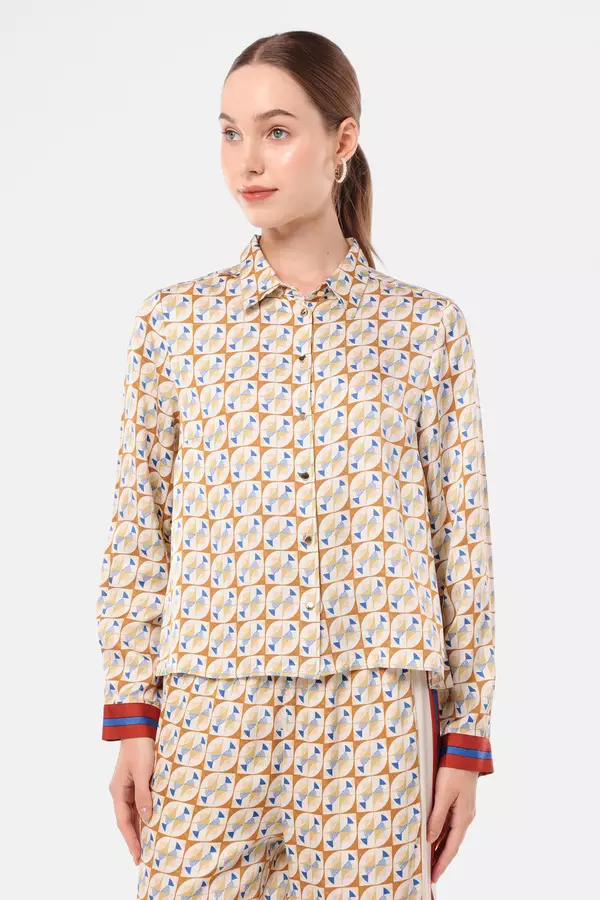 MINIMAL - Glow - Kemeja Satin Motif geometris - Beige Warna Beige