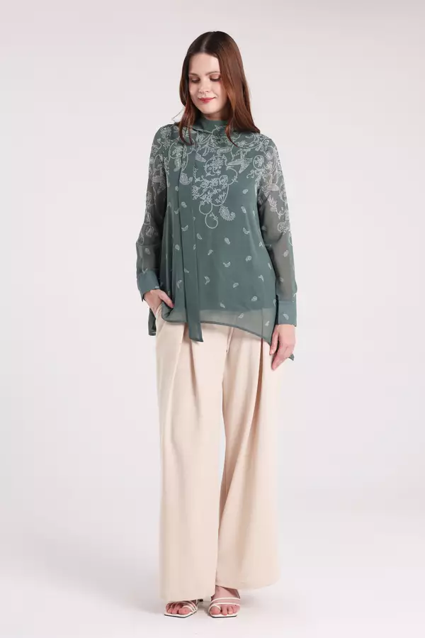MINIMAL - Lacy - Blus Chiffon Motif Paisley - Green