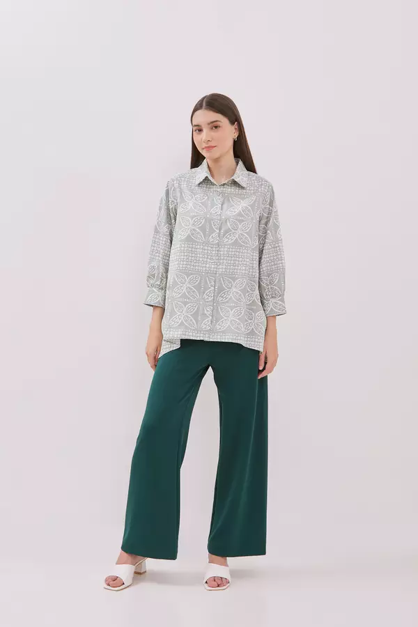 MINIMAL - Malya - Kemeja A Line Motif Kawung - Light Green