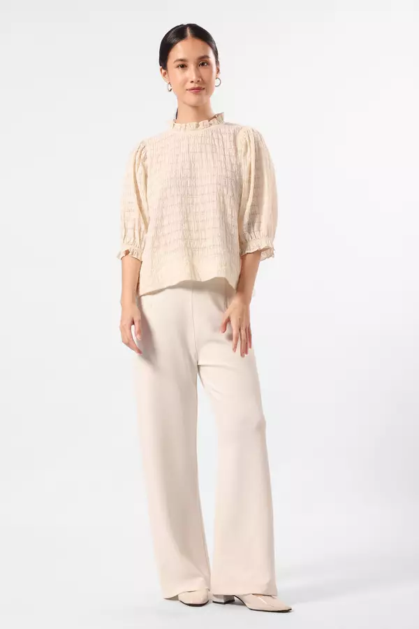 MINIMAL - Minami - Sheersucker Ruffle Blouse - Off White Colour Offwhite