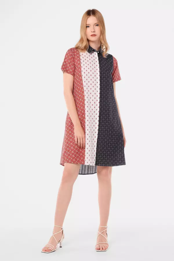 MINIMAL - Nastira - Dress Katun Motif Etnik - Red Colour Red