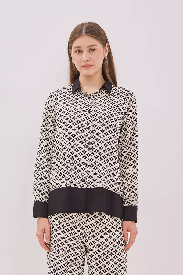 MINIMAL - Saviana - Geometric Printed Shirt - Black Colour Black