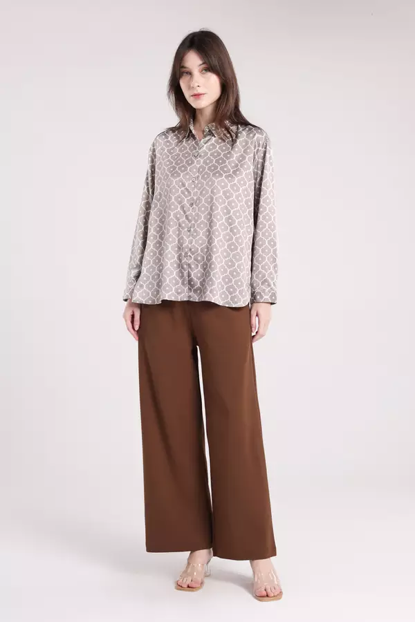 MINIMAL - Serine - Kemeja Satin Motif Geometris - Beige Warna Beige