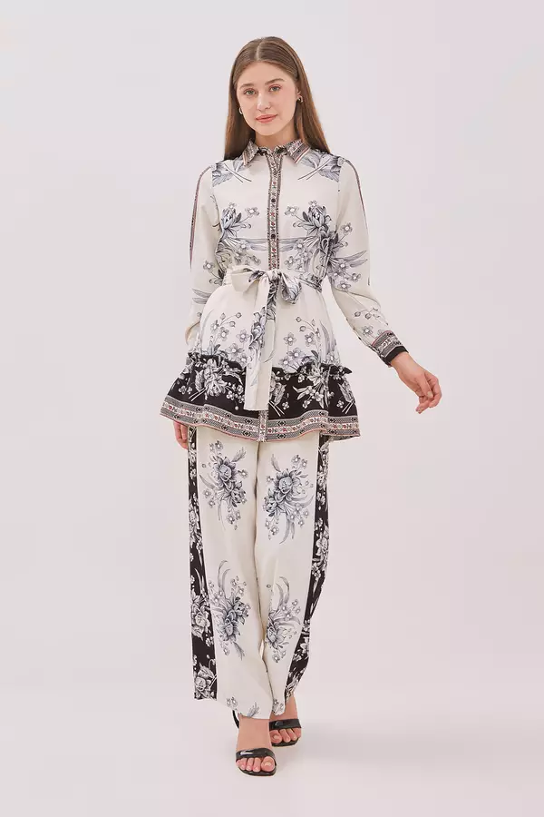MINIMAL - Verna - Tunic Ruffle Motif Bunga - Black Colour Black
