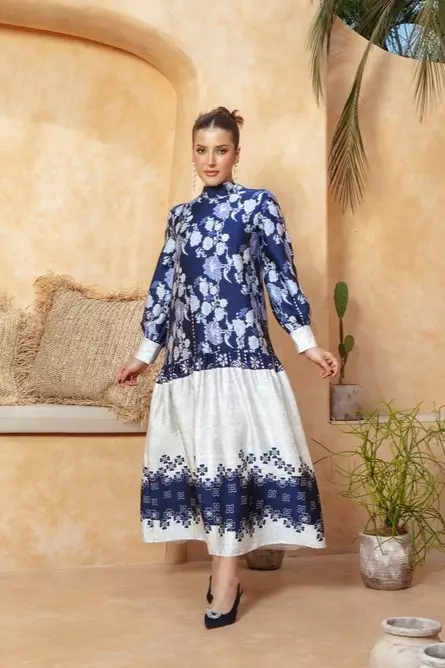 MINIMAL - Jeanna - Gamis Motif Bunga - Blue