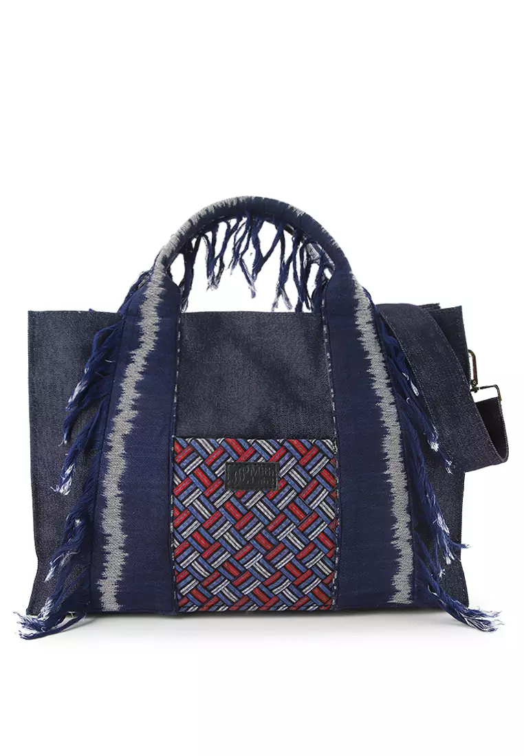 Gayatri Totebag - Tas Wanita Denim Kombinasi Tenun Etnik - Handmade Lokal Premium
