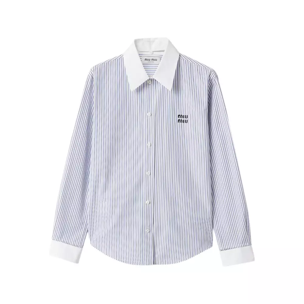 MIU MIUStriped Poplin Longsleeves Shirt White/Light Blue23310000.0015500000.00