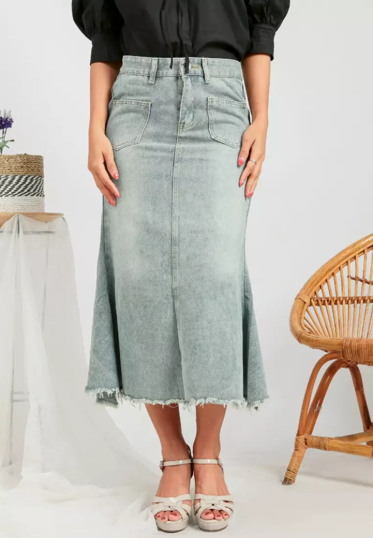 MKY ClothingJillie Unfinished Midi Skirt in Light Blue479900.00289900.00
