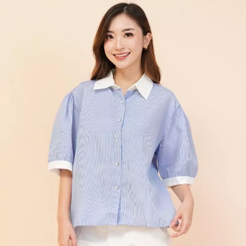 MKY ClothingStacie Solid Collar Stripe Shirt Love Button in Blue329900.00259900.00