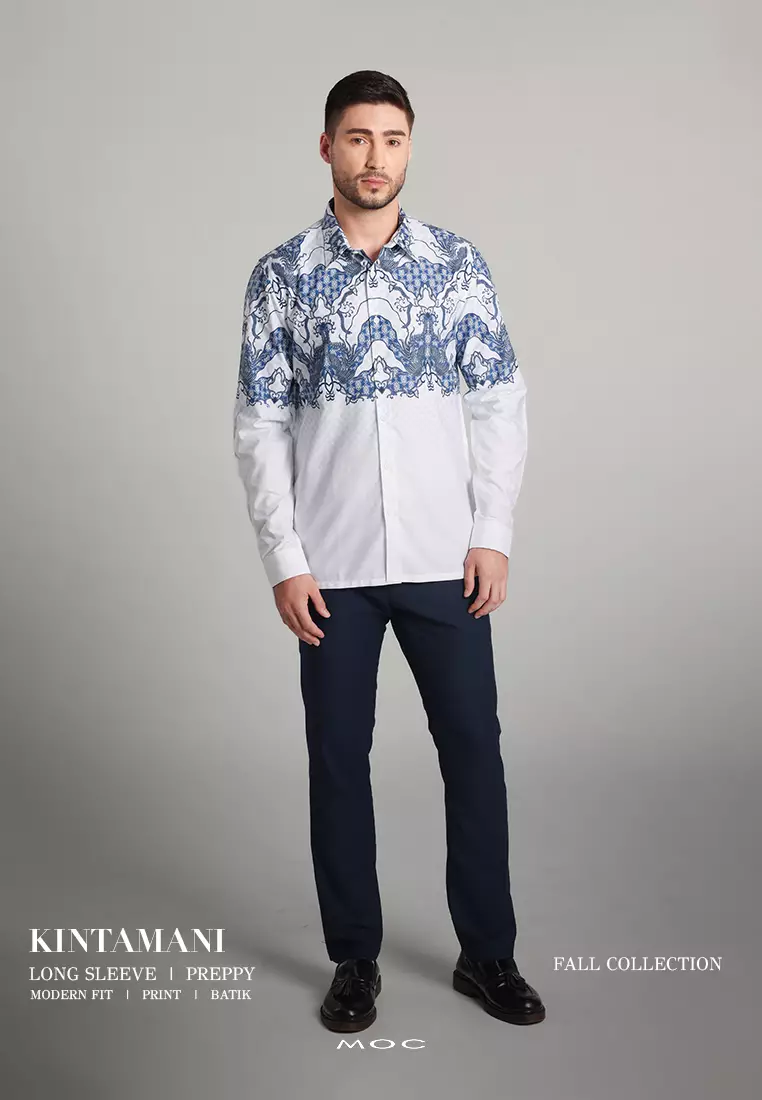 MOC - Kemeja Batik Pria Lengan Panjang Kintamani - White