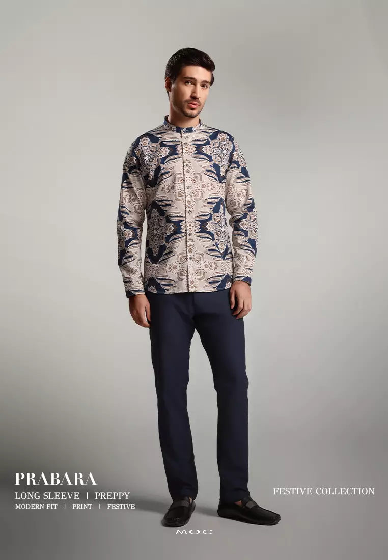 MOC Kemeja Koko Lengan Panjang Pria Modern Fit PRABARA - BEIGE