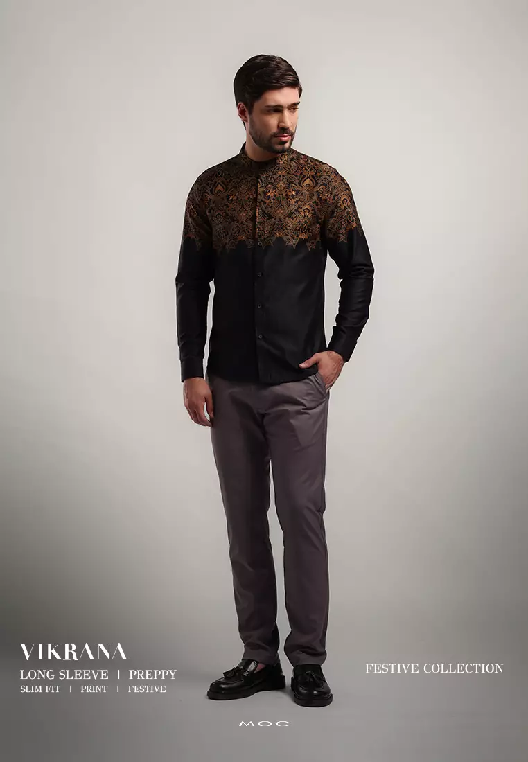 MOC Kemeja Koko Lengan Panjang Pria Slim Fit VIKRANA - BLACK