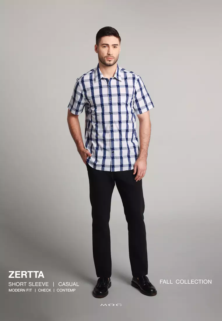 MOC - Kemeja Kotak-kotak Lengan Pendek Pria Zertta - Navy