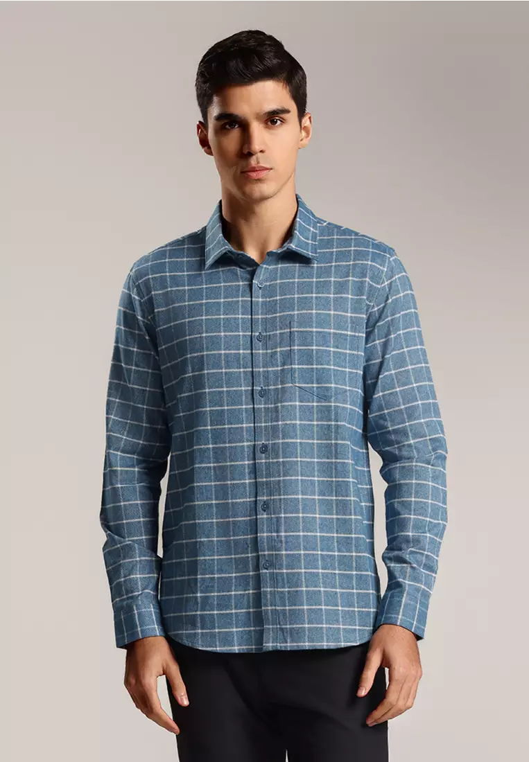 MOCMOC - Kemeja Kotak-kotak Pria Lengan Panjang Spencer - Blue299900.00