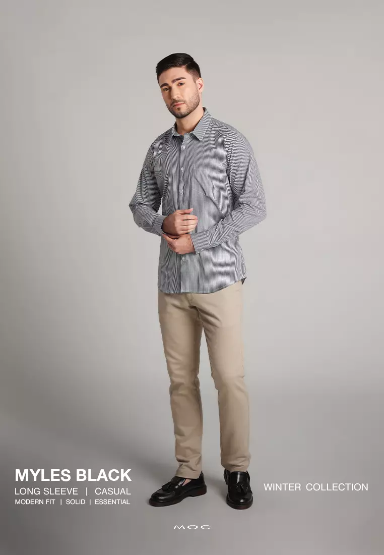 MOC Kemeja Lengan Panjang Stripes Pria Myles - Black