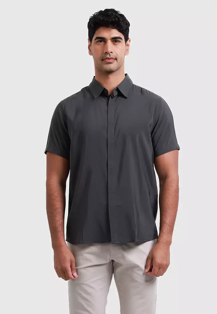 MOC Kemeja Lengan Pendek Pria MONTE - DARK GREY