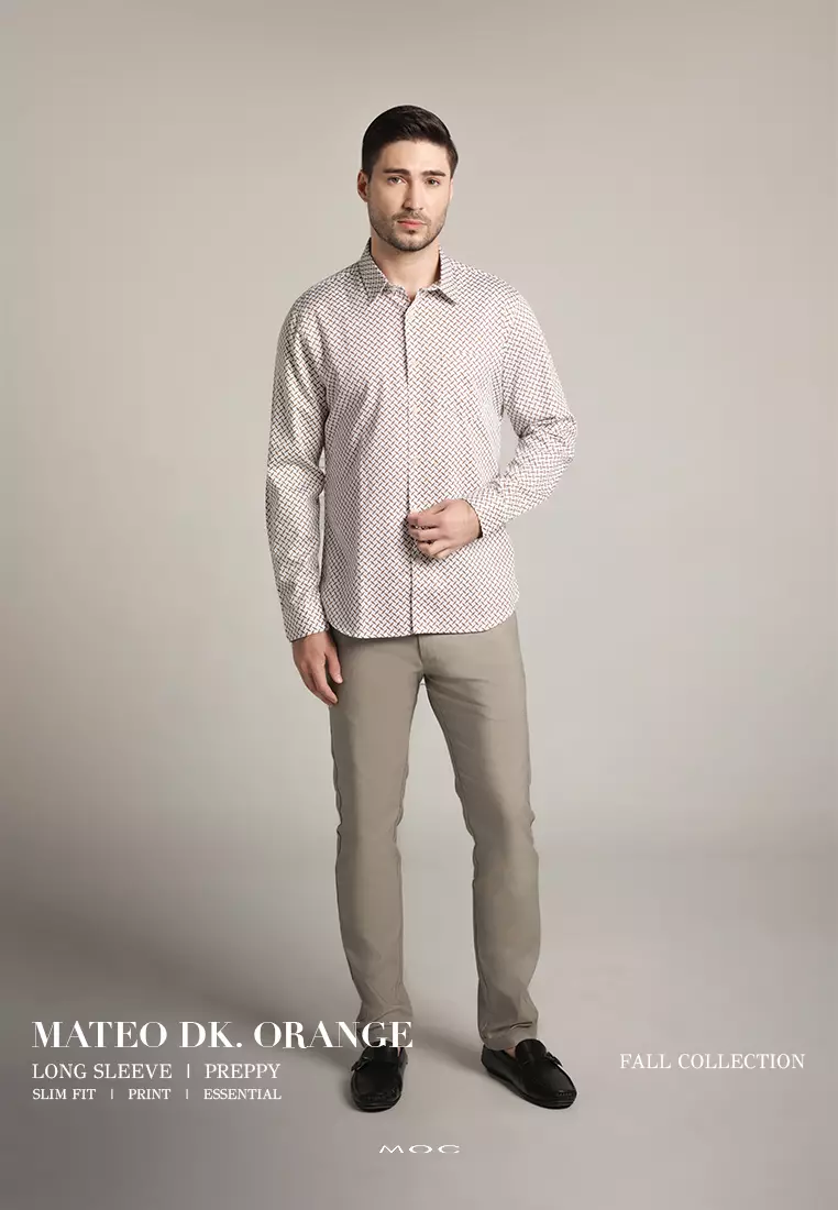 MOC Kemeja Motif Lengan Panjang Pria Mateo - Dark Orange
