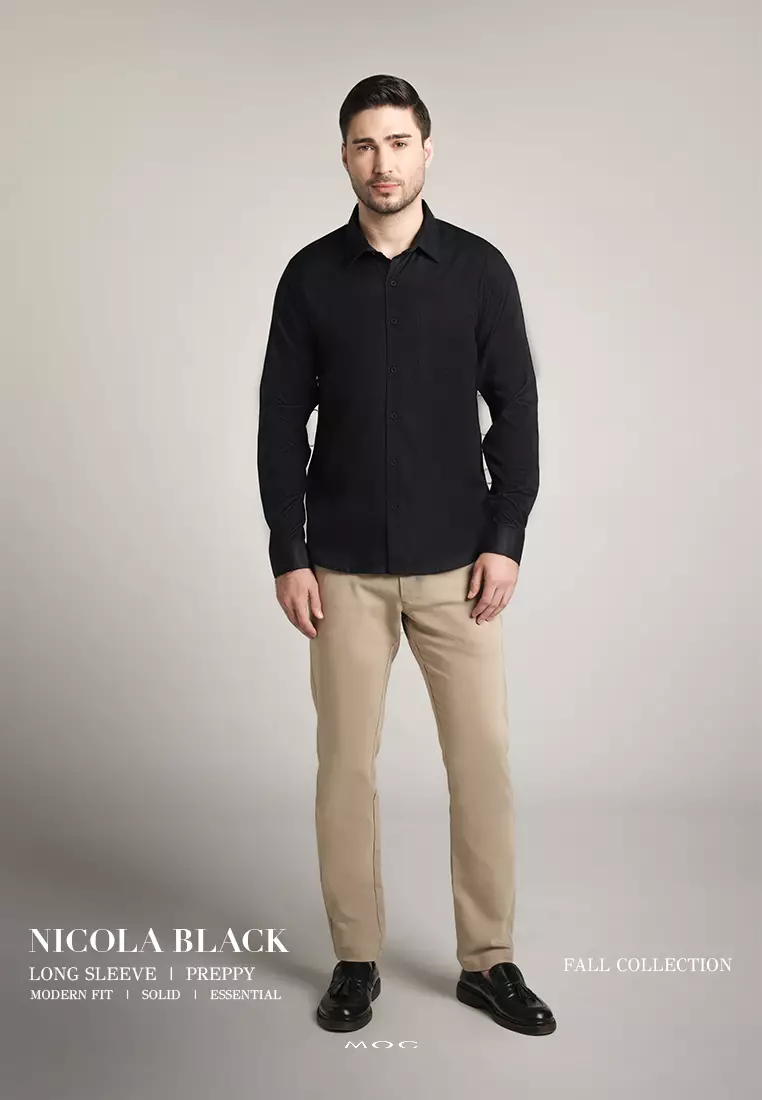MOC - Kemeja Polos Pria Lengan Panjang Nicola - Black