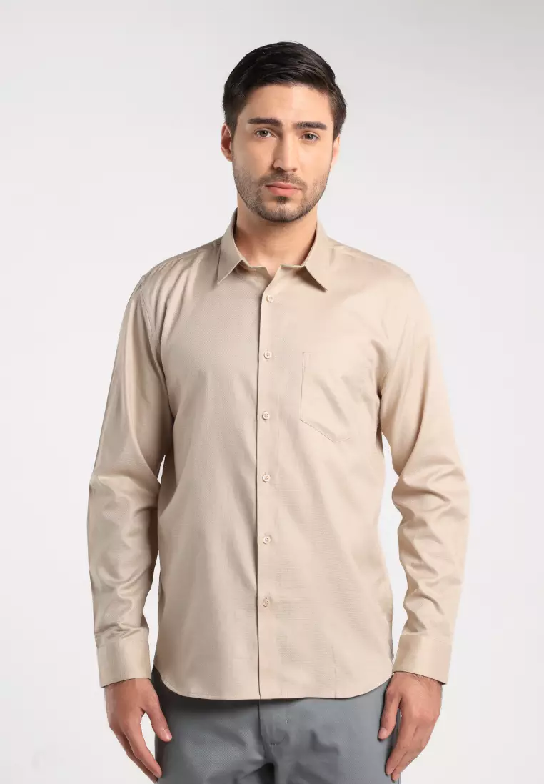 MOC - Kemeja Polos Pria Lengan Panjang Nicola - Khaki
