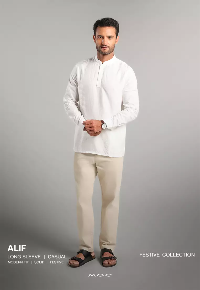 MOC Kemeja Shanghai Lengan Panjang Pria Alif - White