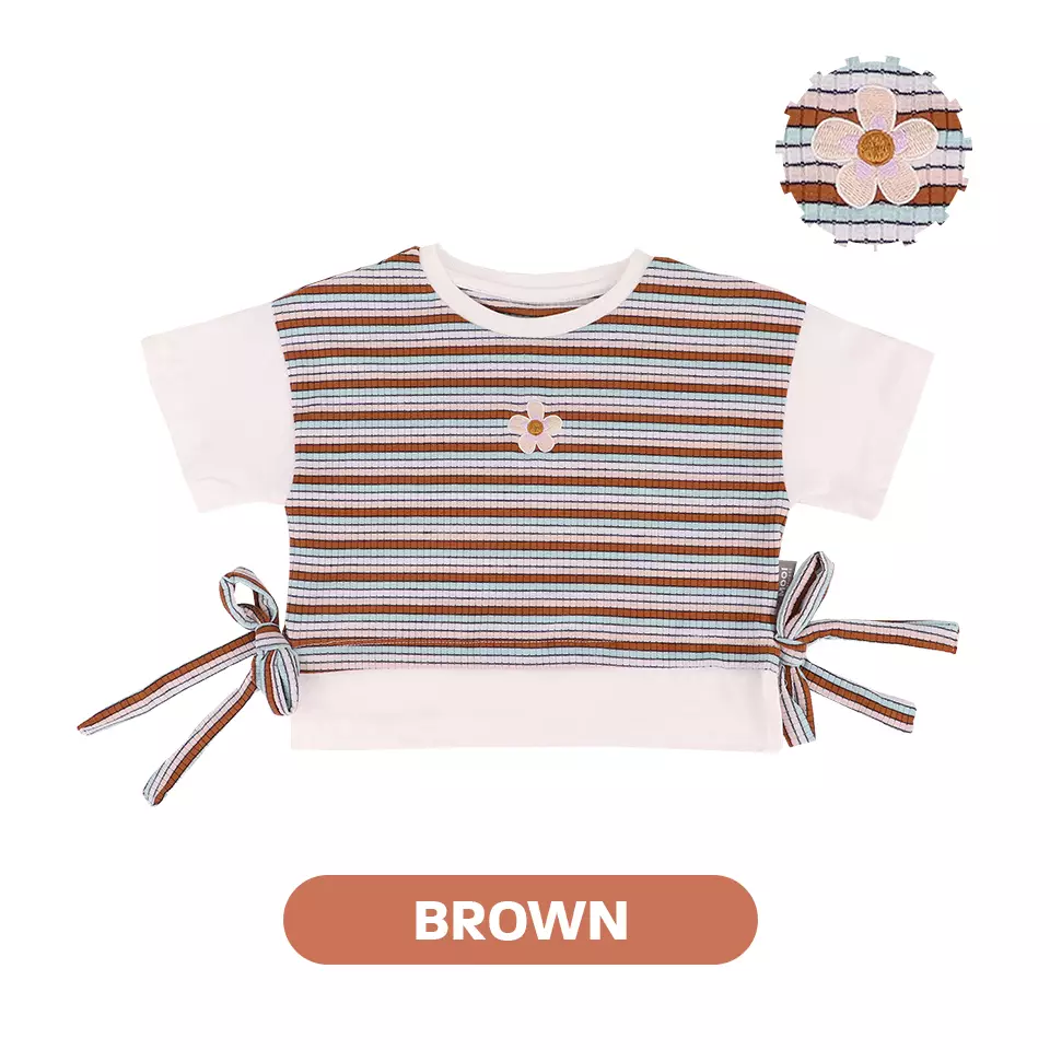 Mooi Atasan Anak Perempuan Chisa Striped Tee - Brown
