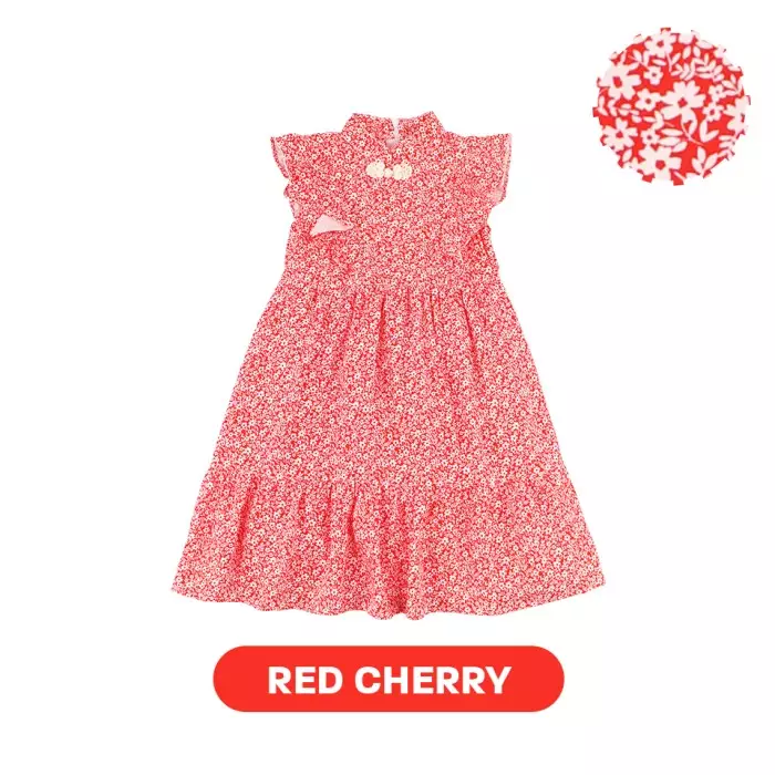 Mooi Dress Anak Perempuan Lunar Collection Daisy Cheongsam Dress - Red Cherry