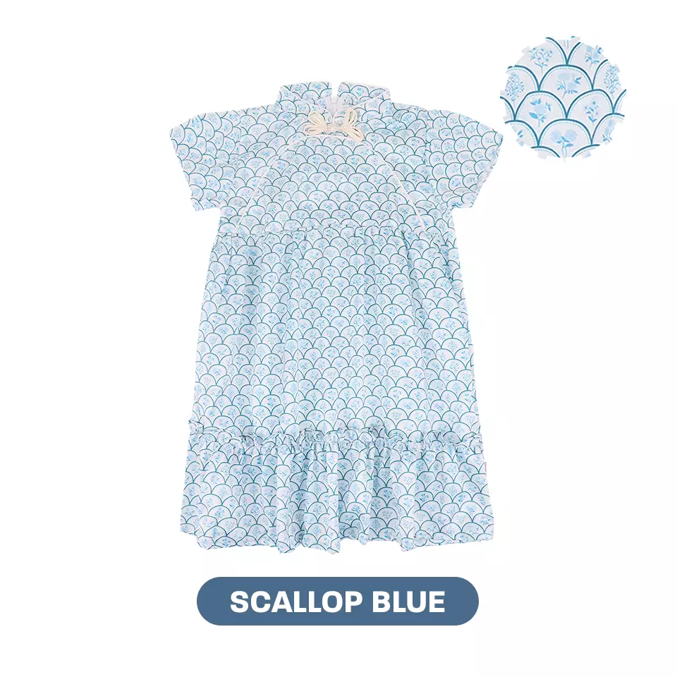 Mooi Dress Anak Perempuan Lunar Collection Huan Cheongsam Dress - Scallop Blue