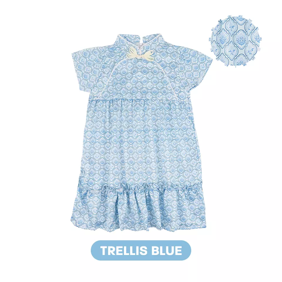 Mooi Dress Anak Perempuan Lunar Collection Huan Cheongsam Dress - Trellis Blue