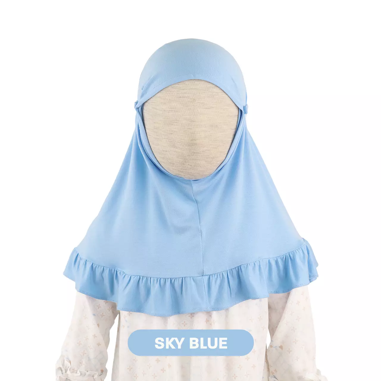 Mooi Hijab Ruffle Instant Anak Jilbab Anak Perempuan Nada Hijab - Sky Blue