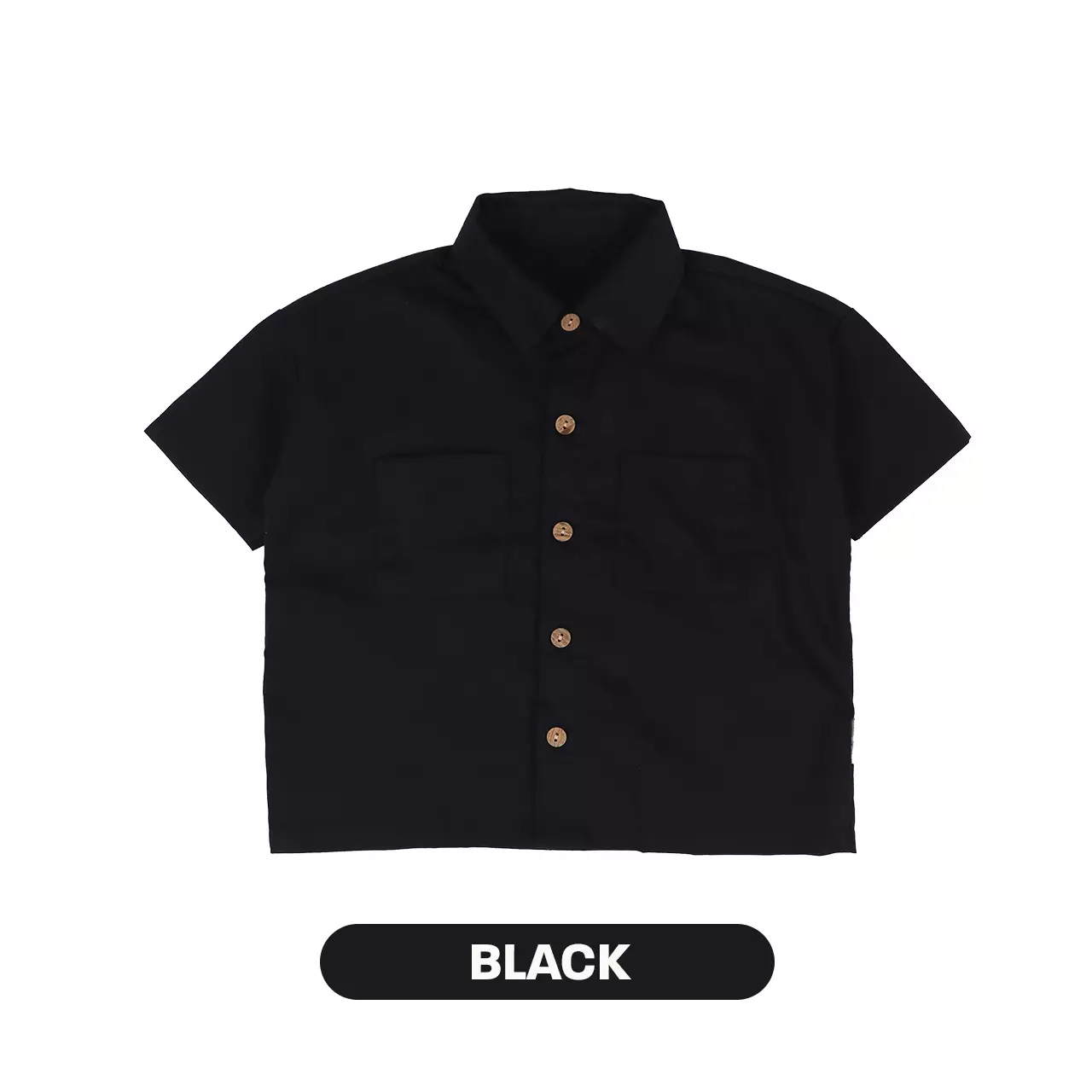 Mooi Kemeja Anak Laki-laki Akio Boxy Shirt Pocket - Black