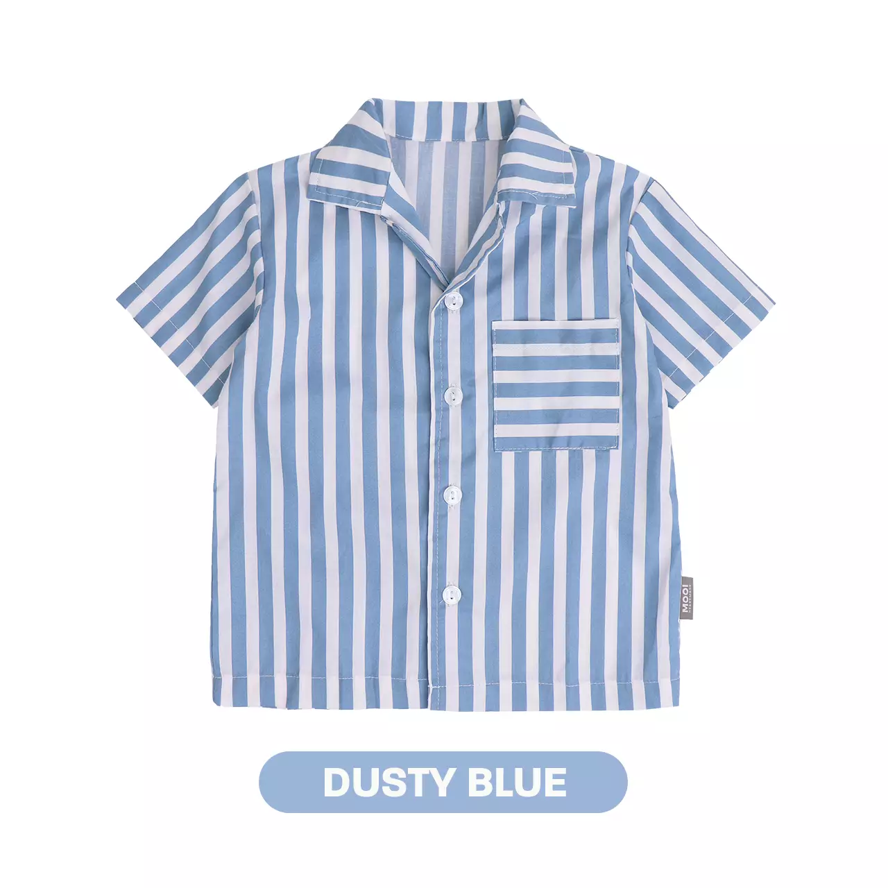 Mooi Kemeja Anak Laki-laki Kemeja Katun Motif Arka Striped Shirt - Dusty Blue