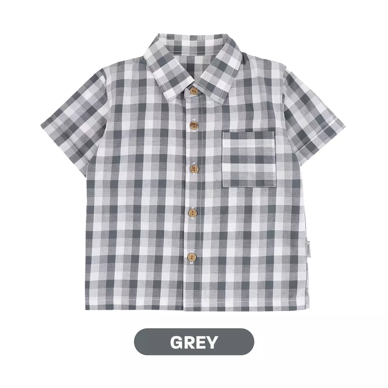 Mooi Kemeja Anak Laki-laki Kemeja Katun Motif Dion Striped Shirt - Grey