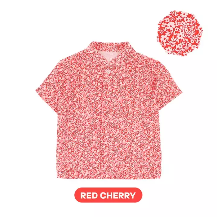 Mooi Kemeja Anak Laki-Laki Lunar Collection Hua Mandarin Shirt - Red Cherry