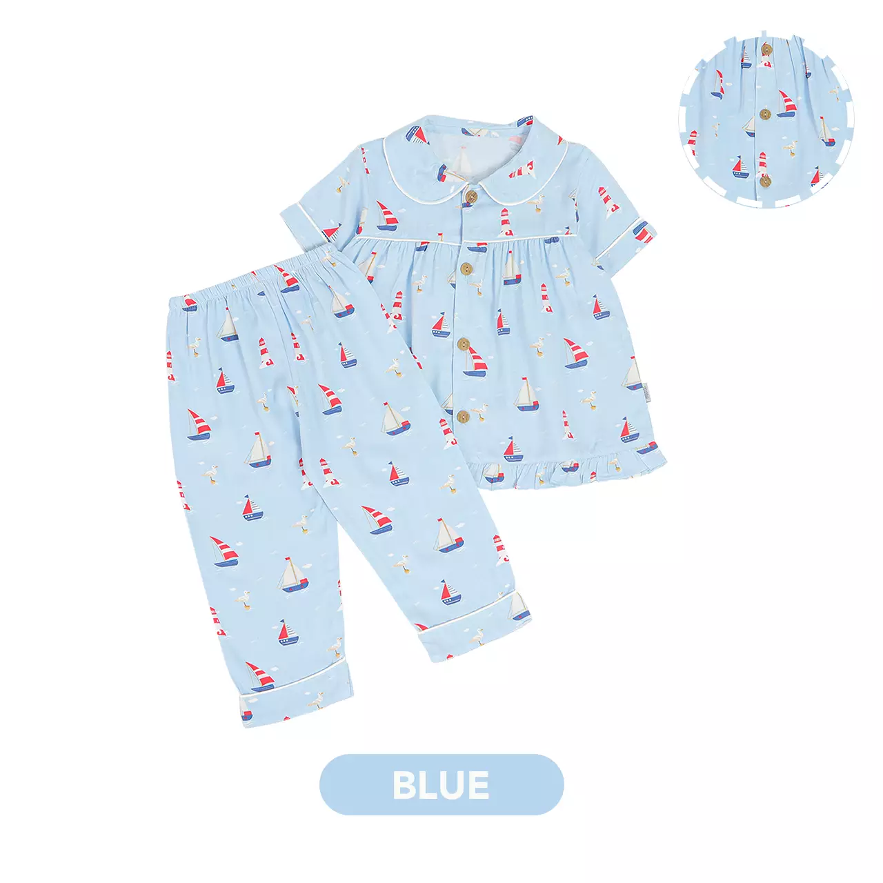 Mooi Piyama Anak Baju Tidur Anak Cheryl Short Pajamas Kids - Blue
