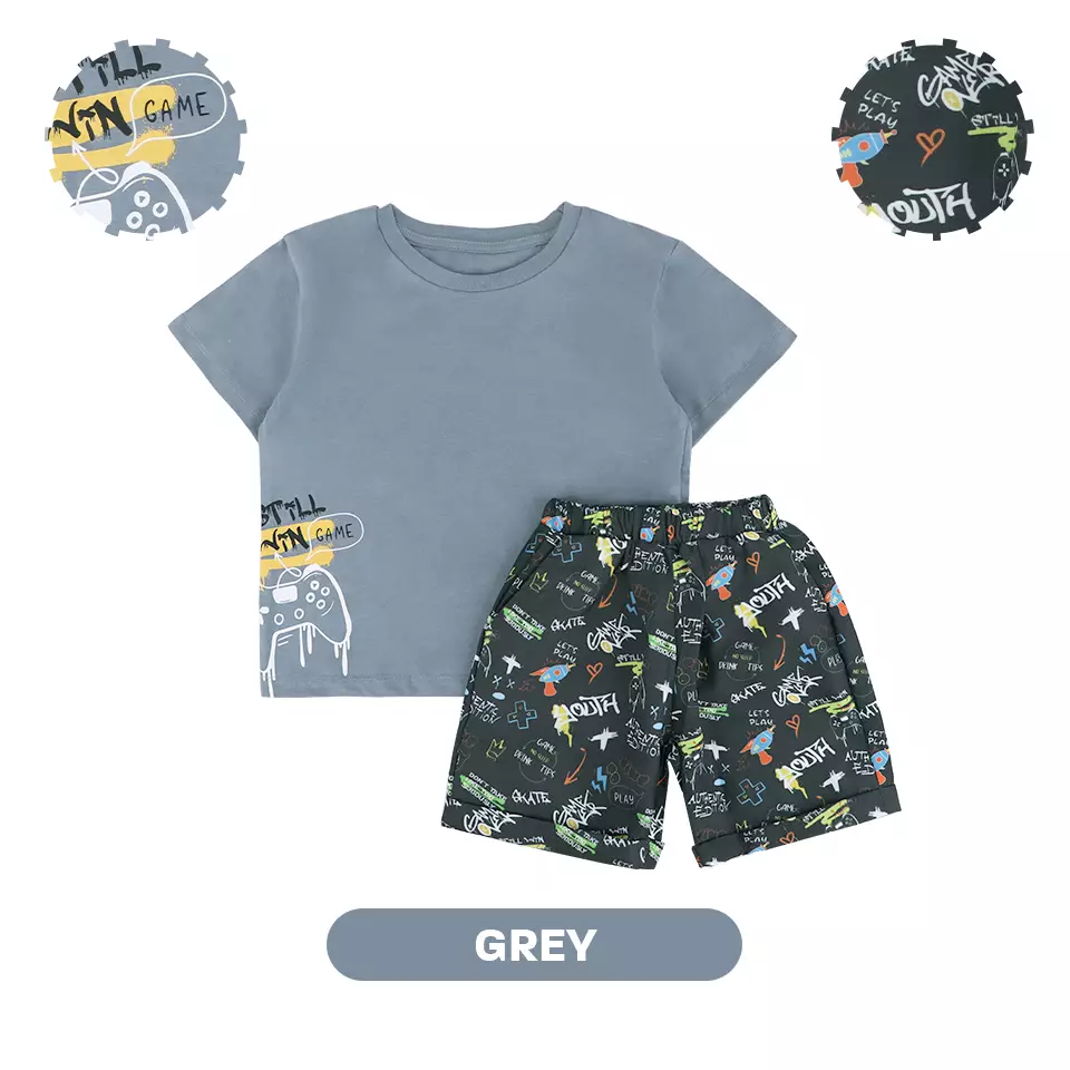 Mooi Setelan Anak Kaos Anak Tshirt Street Graffiti Set - Grey