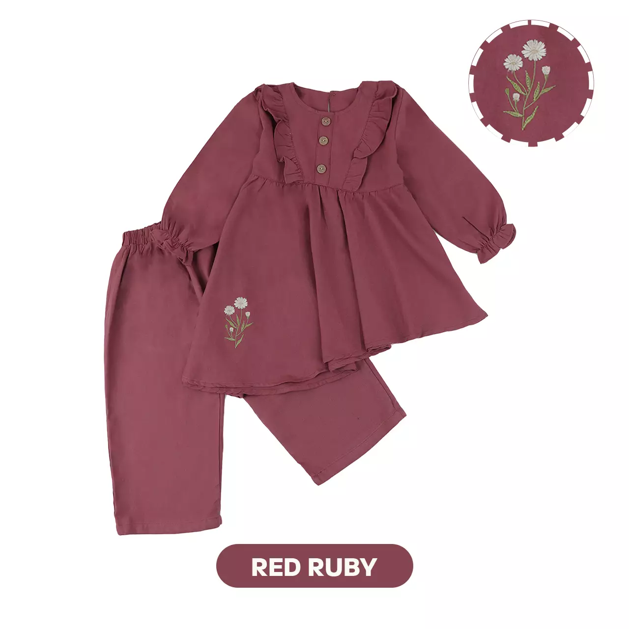 Mooi Setelan Anak Perempuan Xavia Tunik Set - Red Ruby