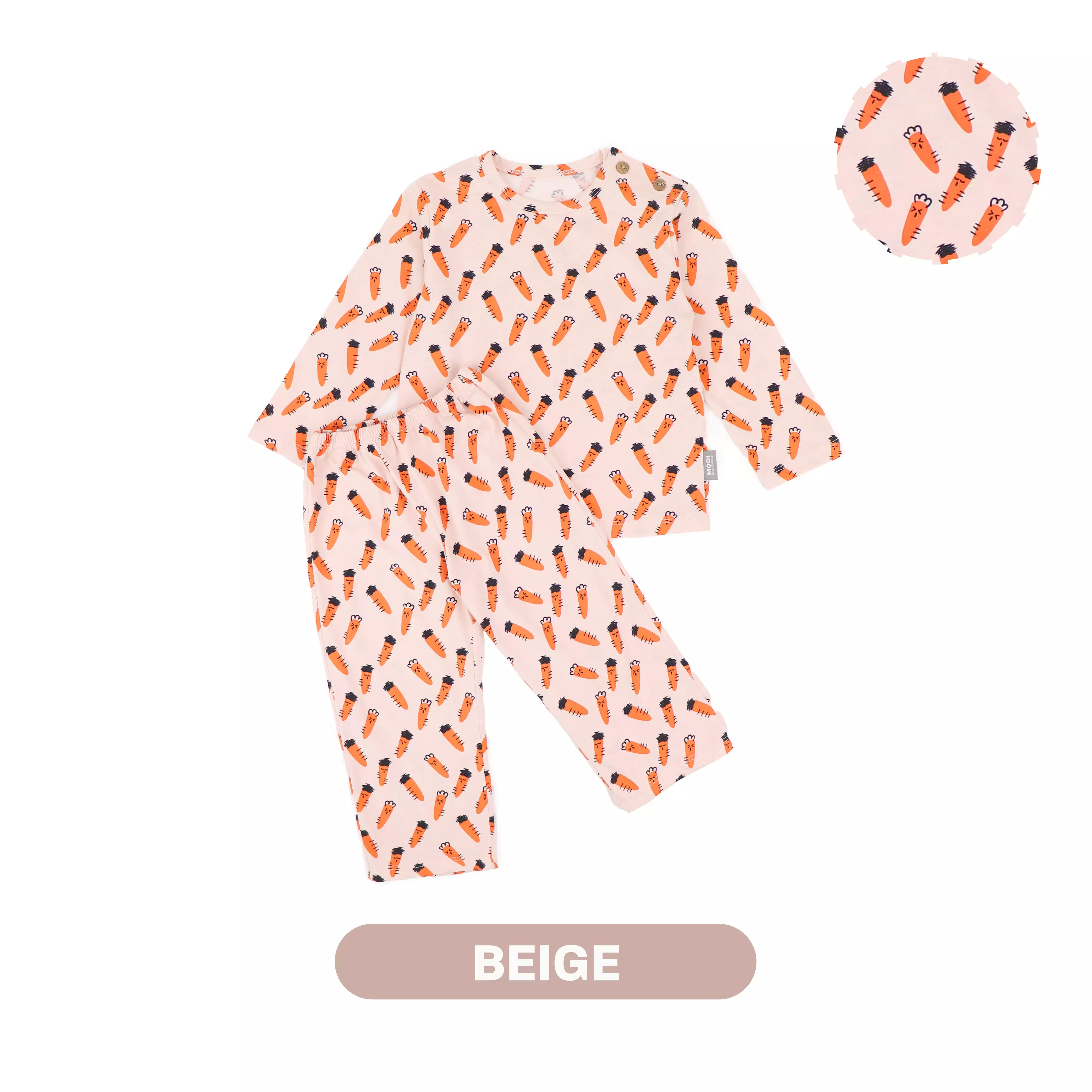Mooi Setelan Piyama Anak Mikio Pajamas Set Print - Beige