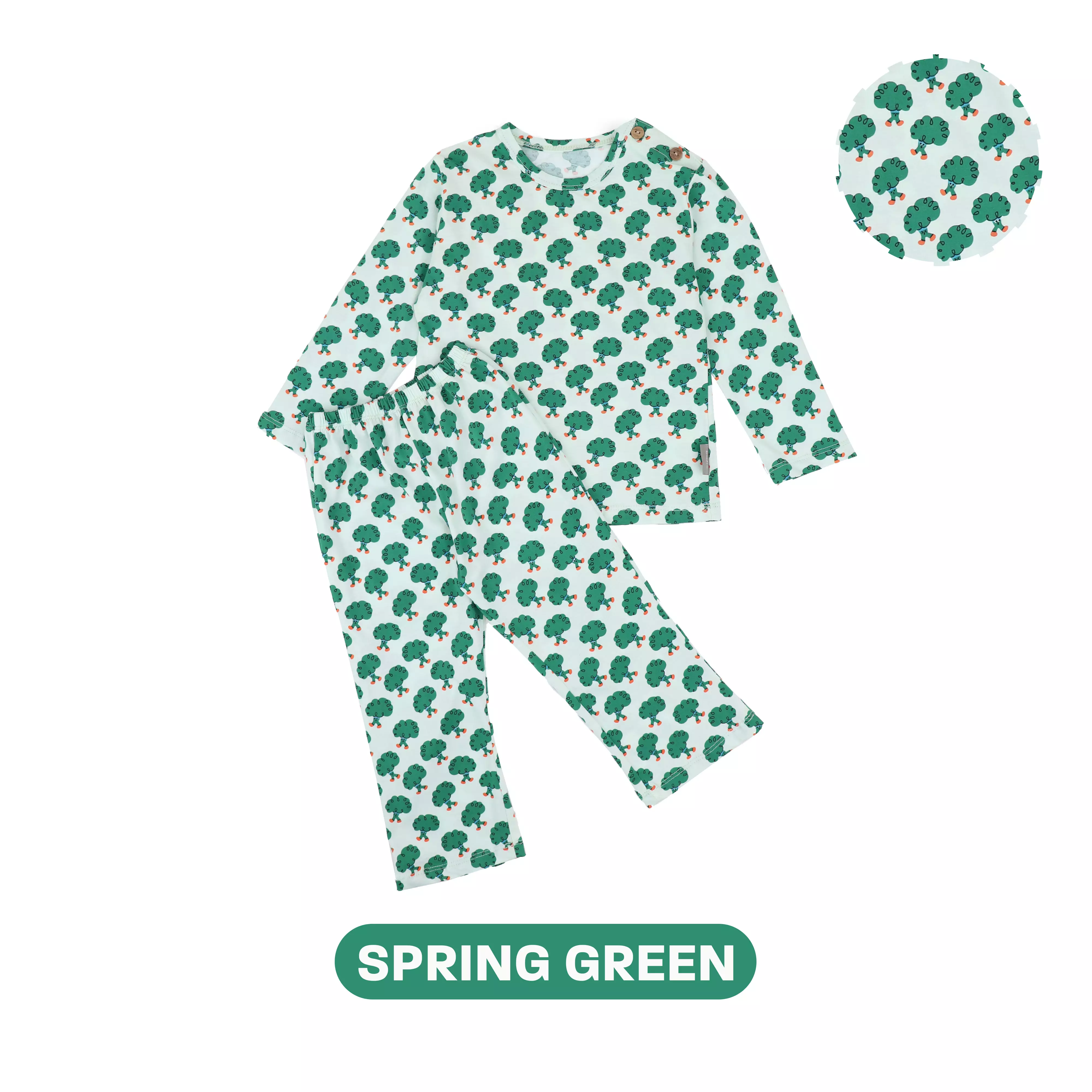 Mooi Setelan Piyama Anak Mikio Pajamas Set Print - Spring Green