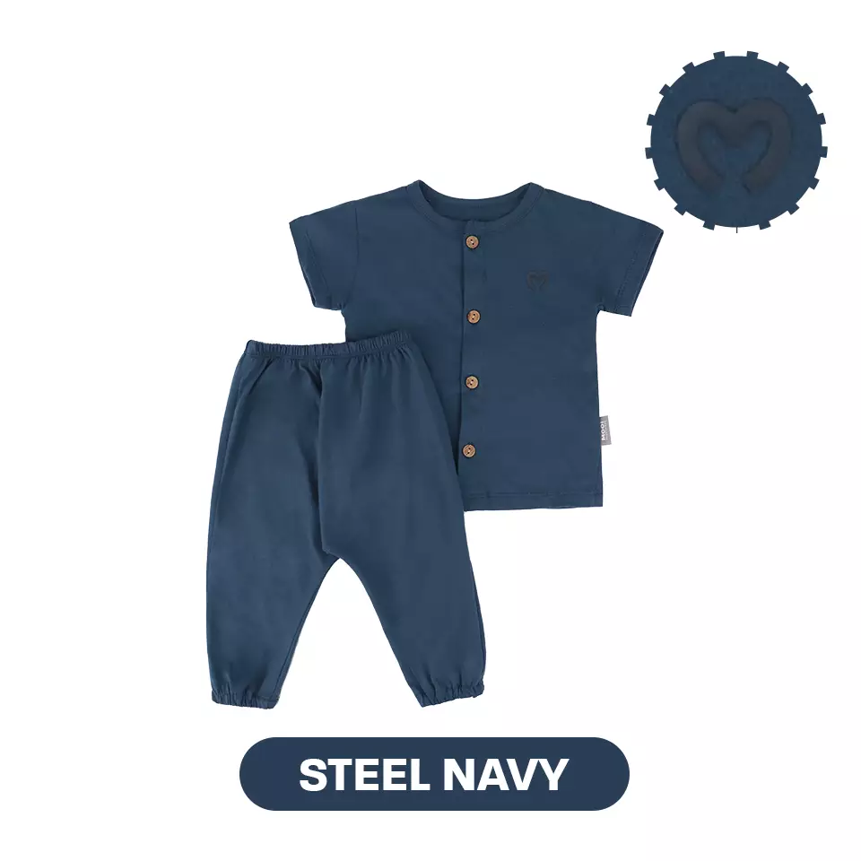 Mooi Setelan Piyama Bayi Comfy Baby Button Pajamas Set - Steel Navy