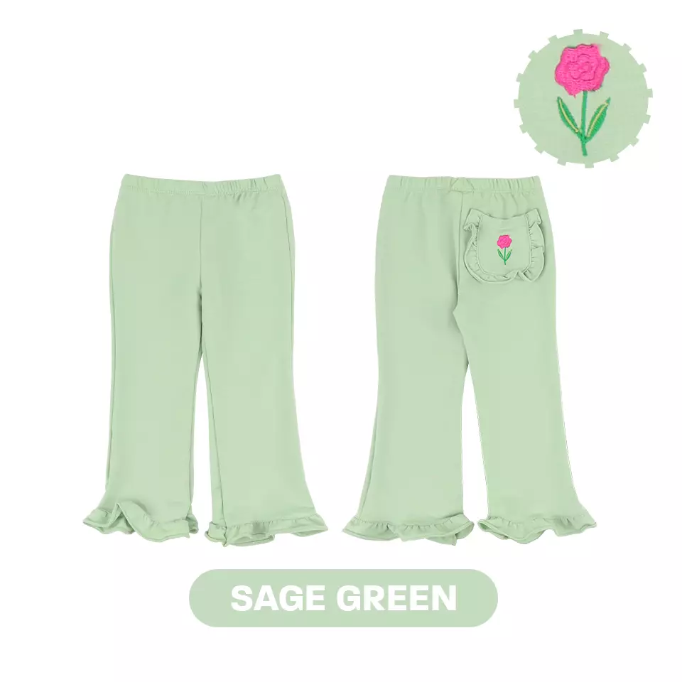 Mooi X Dinda Puspitasari Celana Panjang Anak Perempuan Yumna Pants Ruffle - Sage Green