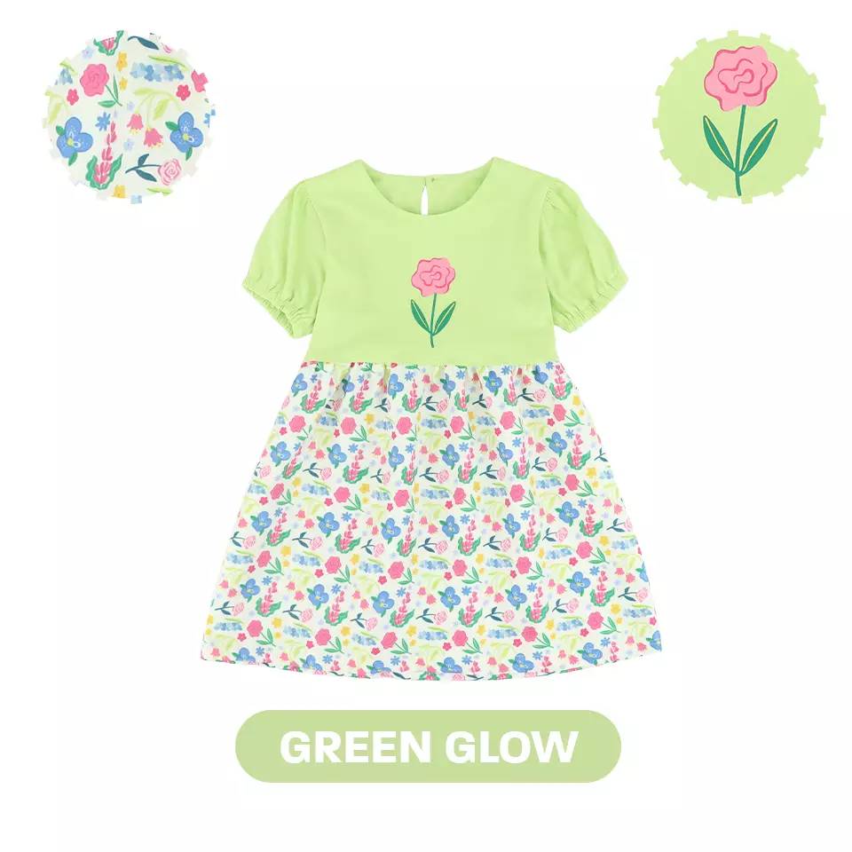 Mooi X Dinda Puspitasari Dress Anak Perempuan Mely Dress - Green Glow