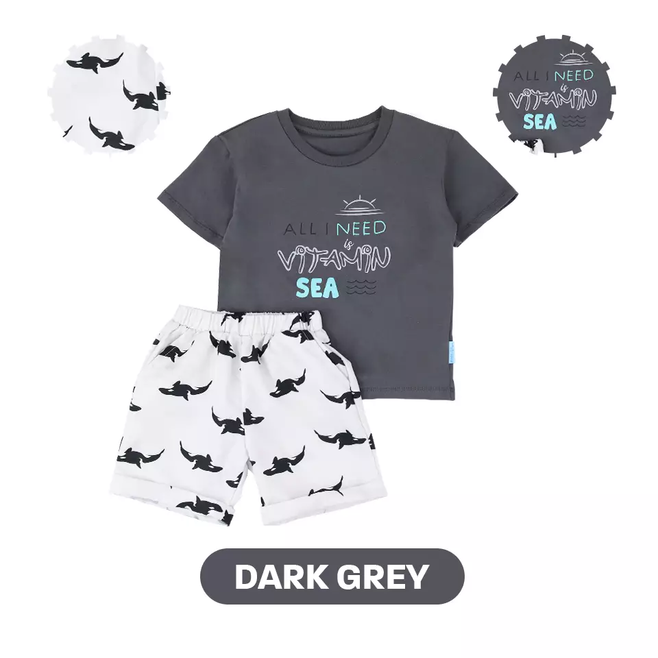 Mooi X Dinda Puspitasari Setelan Anak Kio Graphic Tee Set - Dark Grey