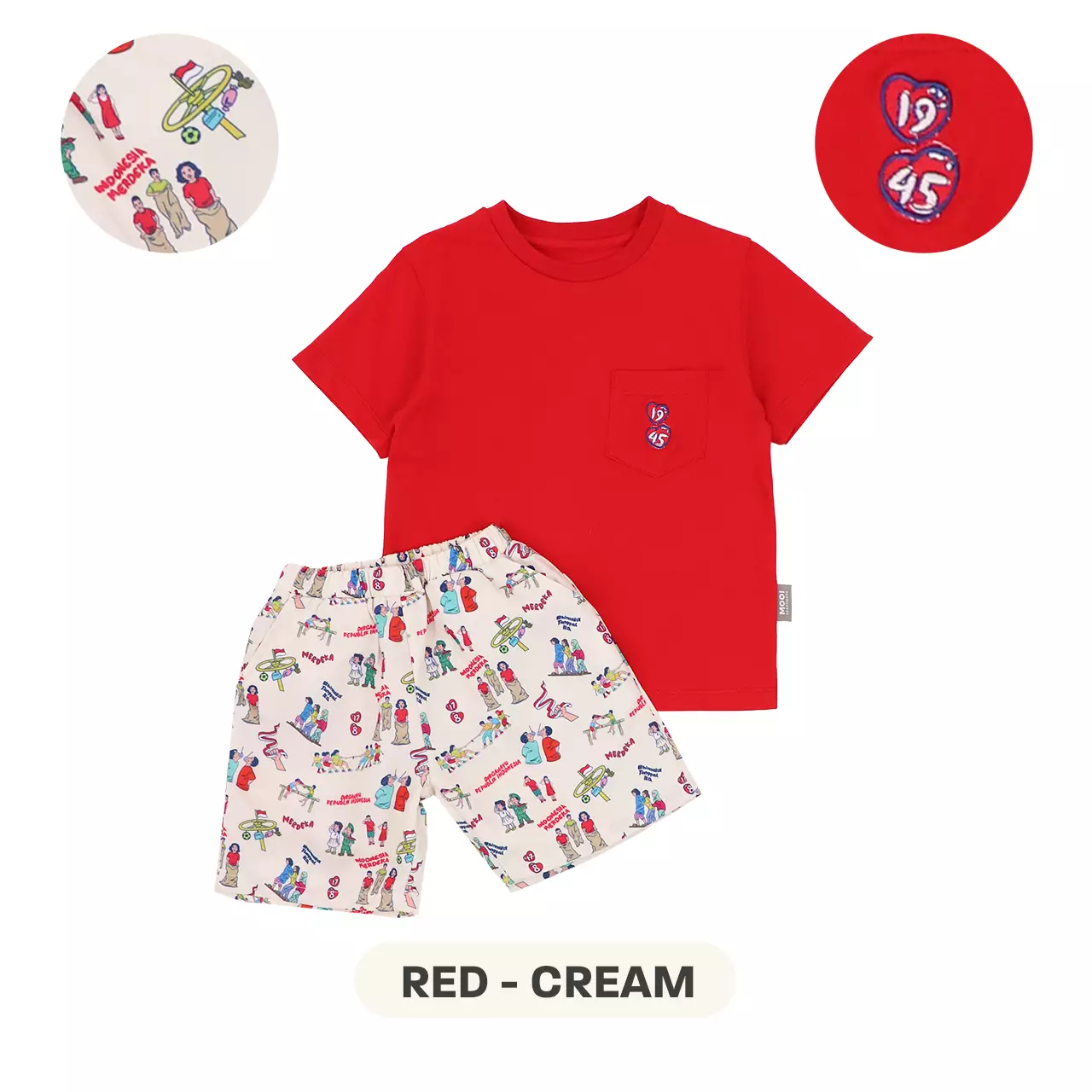 Mooi x Hari Merdeka 17 Agustus Kaos Kemerdekaan Setelan Anak Pocket Tee Set Kemerdekaan - Red-Cream