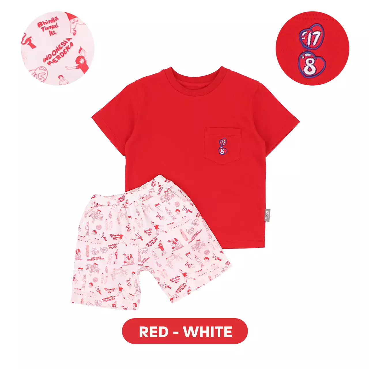 Mooi x Hari Merdeka 17 Agustus Kaos Kemerdekaan Setelan Anak Pocket Tee Set Kemerdekaan - Red-White